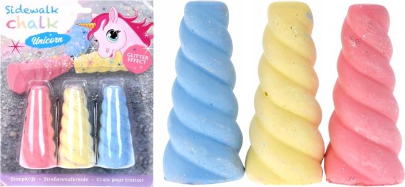 Szukasz kolorowej kredy dla dziecka? O co powiesz na kredę przypominającą róg jednorożca? KREDA CHODNIKOWA JEDNOROŻEC Z EFEKTEM BROKATU 3 SZT pozwoli pobudzić wyobraźnię i kreatywność Twojego dziecka!