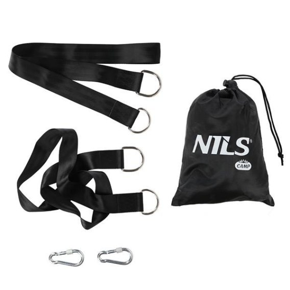 Zestaw lin NC1722 marki NILS CAMP to solidne, wytrzymałe pasy do zawieszania huśtawek, hamaków, czy foteli typu bocianie gniazdo w dowolnym miejscu i w krótkim czasie. Pasy są wykonane z materiału, który się nie przeciera, nie rozciąga się i cechuje się bardzo dużą wytrzymałością. Dodatkowo pasy zostały wyposażone w karabińczyki oraz stalowe pierścienie typu D, umożliwiające szybki i łatwy montaż bez użycia narzędzi. W zestawie NC1722 znajduje się również torba transportowa, która ułatwia łatwe przenoszenie oraz przechowywanie.