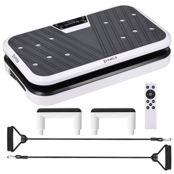 W zestawie z platformą znajdują się gumy treningowe , które umożliwiają jednoczesny trening górnych i dolnych partii ciała. Dodatkowym atutem są uchwyty do pompek , które można ustawiać w wielu pozycjach, co znacząco zwiększa liczbę możliwych ćwiczeń i pozwala na kompleksowy trening całego ciała na jednej platformie wibracyjnej.