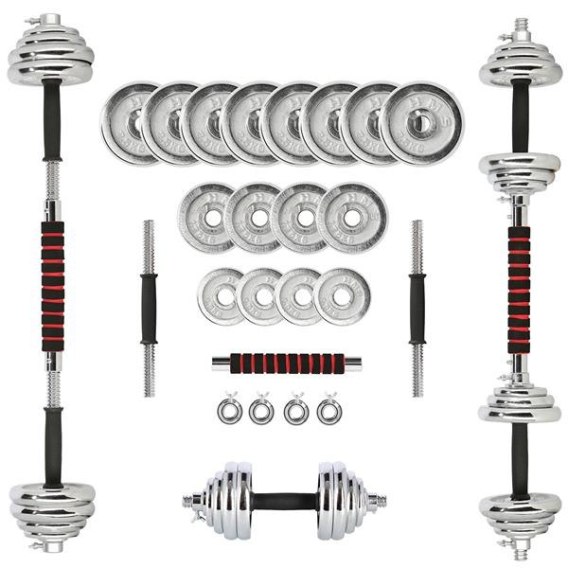 Sztangielki mają możliwość wymiany obciążenia, a specjalne łączenie pozwala stworzyć sztangę. Taki zestaw umożliwi zaoszczędzenie miejsca i pieniędzy. Zakup tego sprzętu pozwoli na poszerzenie możliwości treningowych. Możliwe staje się wykonanie kompleksowego treningu na każdą grupę mięśni.